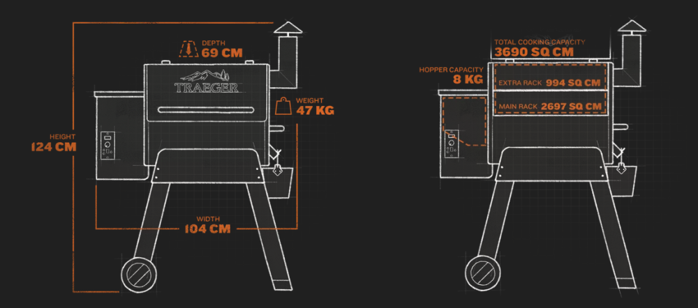 Prináša bezkonkurenčnú chuť do vašej záhrady. S týmto "základným" peletovým grilom dosiahnite lahodné výsledky pri všetkom, od steakov, pizze až po rodinné večere a oslavy. Veľmi vhodný pre začiatočníkov ale aj pokročilých majstrov. Vďaka rozsahu teplôt od pomalého údenia až po (232 °C) bez problémov pripravíte hovädzí brisket, dokonale ugrilujete steaky, kuracie krídla alebo zeleninu zakaždým s dokonalými výsledkami. Jednoduché ovládanie a priložená mäsová sonda Traeger uľahčujú grilovanie čohokoľvek, čo je na vašom menu.