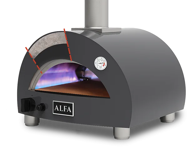 Priestor medzi stenami z nehrdzavejúcej ocele domácej pizza pece Alfa je vyplnený izoláciou DoubleDown Ceramic Superwool®. Toto keramické vlákno ponúka dvojnásobnú tepelnú odolnosť v porovnaní s minerálnou vlnou, ktorú používajú iní výrobcovia pecí na pizzu. Tiež lepšie udržiava teplo a umožňuje dokonale prepečenie pizze.