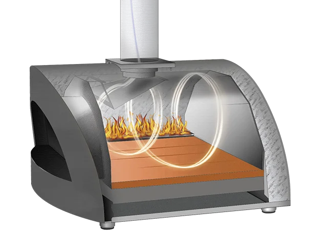 Tento konkrétny systém optimalizuje cirkuláciu horúceho vzduchu vo vnútri pecí Alfa. Namiesto rýchleho odsávania cez dymovod, ako je to v iných peciach na pizzu, horúci vzduch cirkuluje vo varnej komore a je tlačený nadol, aby ďalej zohrial žiaruvzdornú šamotovú tehlu a pizzu.